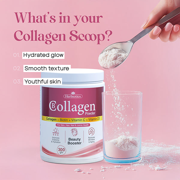 Herbiotics BCollagen Powder helps reduce aging signs like wrinkles & finelines. It helps increase skin elasticity, moisture & Hydration and makes skin more Younger & youthful.